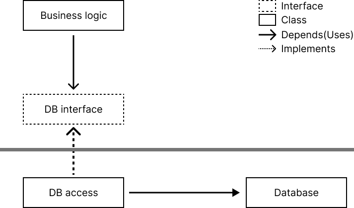 이렇게 dependency graph가 그려지면 Business Logic Component는 DB component의 존재를 모르기 때문에 바뀌어도 문제가 되지 않지만, DB component는 Business Logic에 의존하기 때문에 바뀌면 문제가 생긴다.