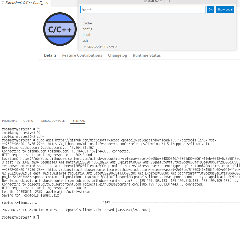 # sudo wget https://github.com/microsoft/vscode-cpptools/releases/download/x.xx.x/cpptools-linux.vsix