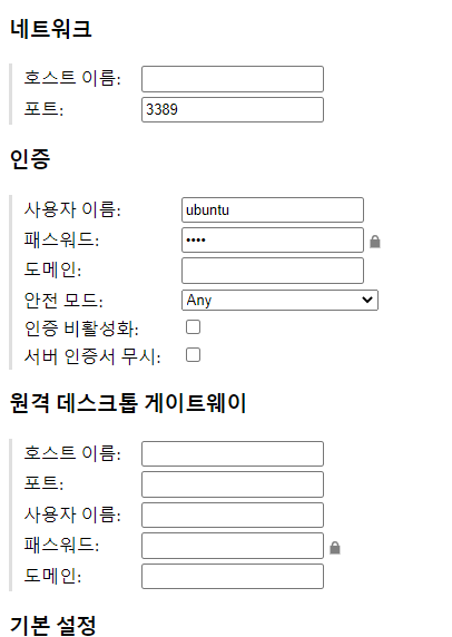 거의 다 왔다. 이제 guacamole이 어떻게 rdp를 할 건지 설정하면 된다.