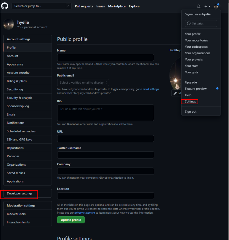 expiration 설정, repo 클릭. generate token. token은 유출하면 안 된다!