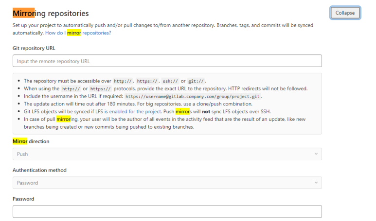 이후 gitlab - (mirror 하고 싶은 프로젝트) - settings - repository.